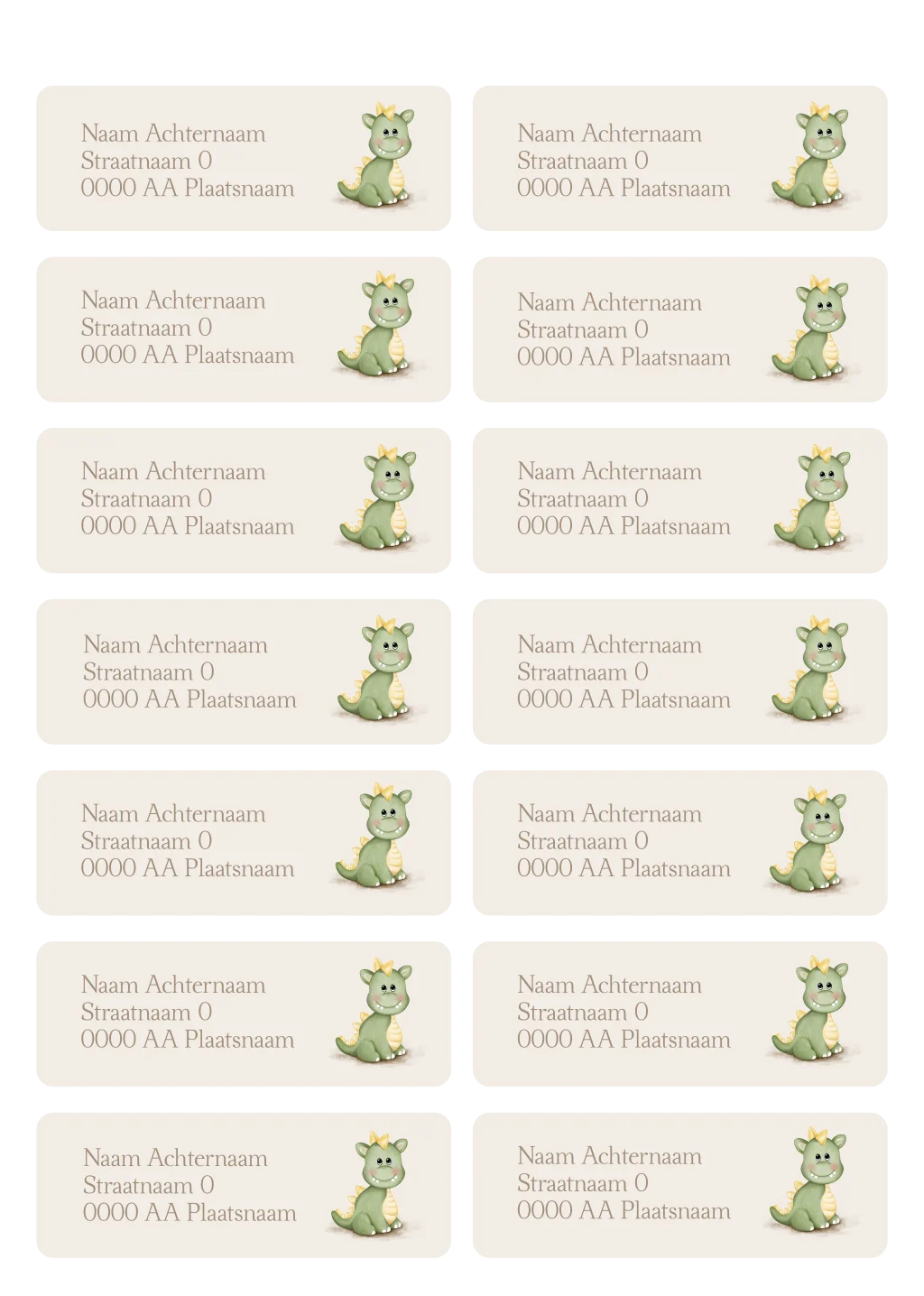 Maak jullie geboorteaankondiging extra bijzonder met deze lieve adresstickers met een ondeugend draakje. De zachte illustratie en rustige kleuren geven de stickers een speelse en warme uitstraling die prachtig past bij een bijpassend geboortekaartje.