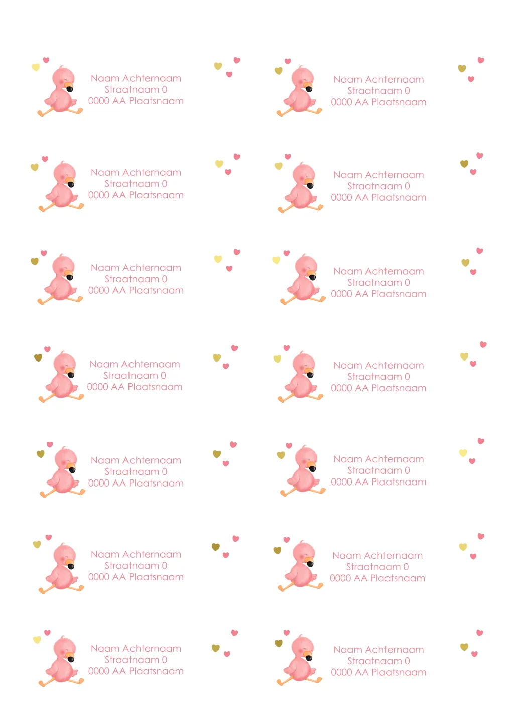 Maak jullie enveloppen extra bijzonder met deze adresstickers met een lieve flamingo. Een zachte en persoonlijke toevoeging aan jullie geboorteaankondiging.