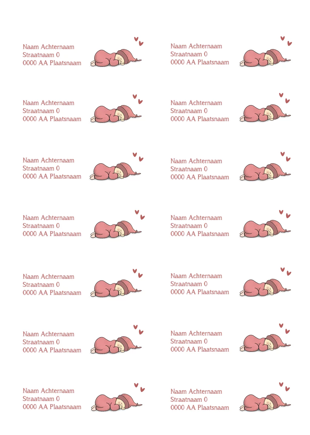 Maak jullie geboortepost van jullie dochter extra bijzonder met deze mooie adresstickers met een tekening van een lief slapend kindje.