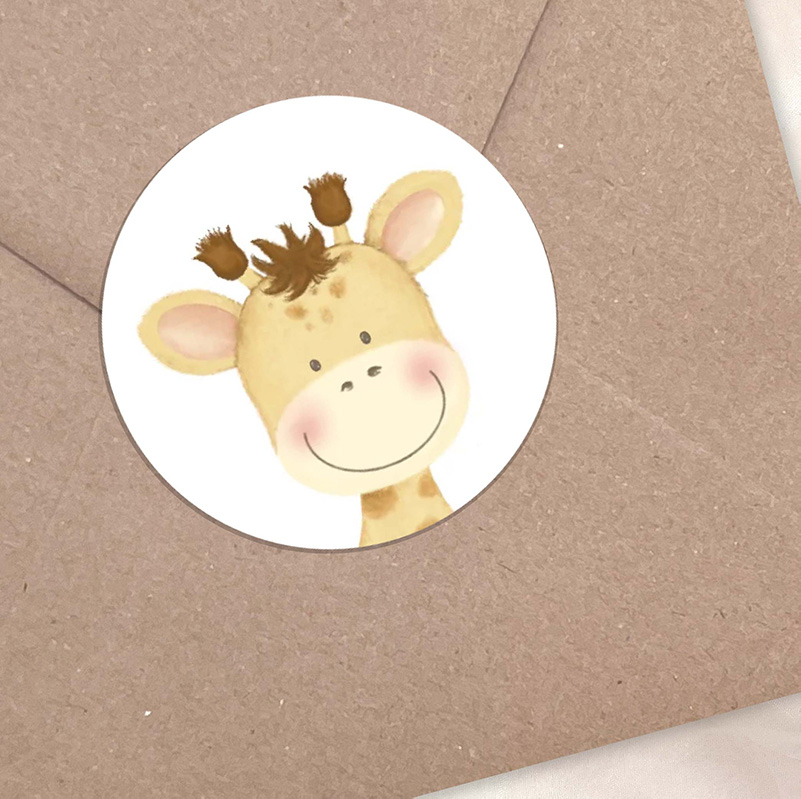 Kiekeboe, daar is je kleintje dan! Deze vrolijke sluitsticker met een lief girafje tovert gegarandeerd een glimlach op elk gezicht. Ideaal om een geboortekaartje stijlvol mee te sluiten, een bedankje op te vrolijken of een traktatie persoonlijk te maken.