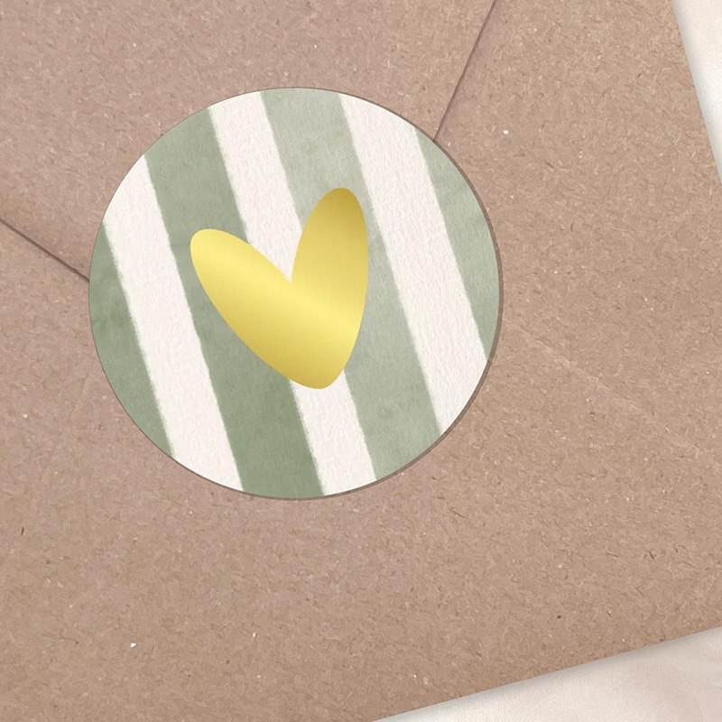 Stickers met hartje in goudfolie – olijfgroene strepen