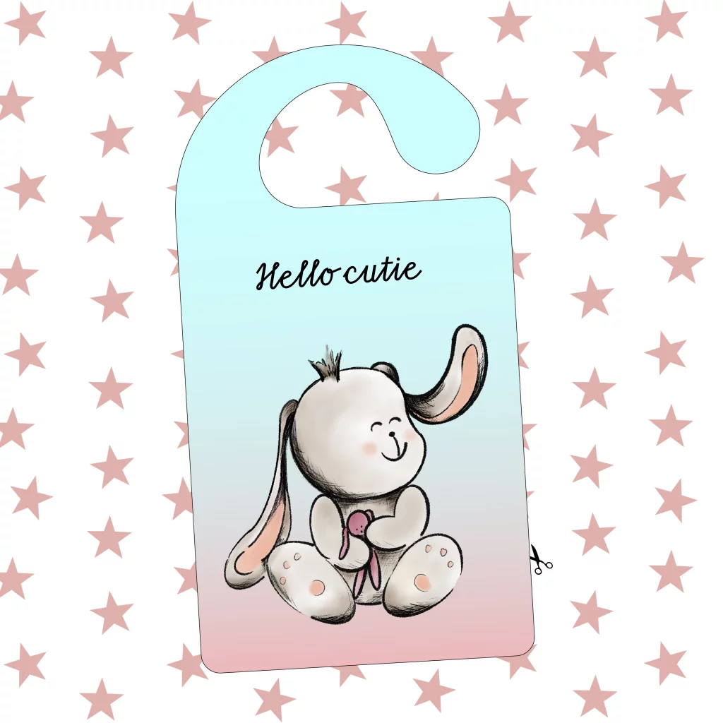 Felicitatie geboorte meisje DIY deurhanger met konijntje
