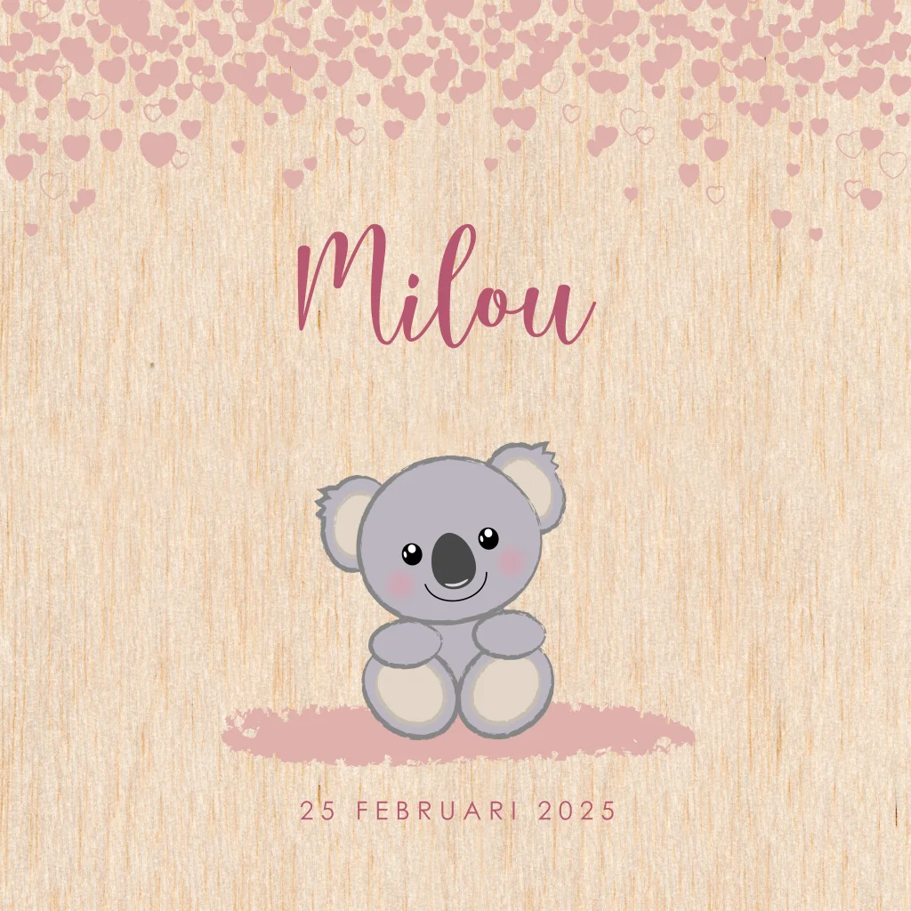 HOUT Geboortekaartje meisje lief koalabeertje Milou