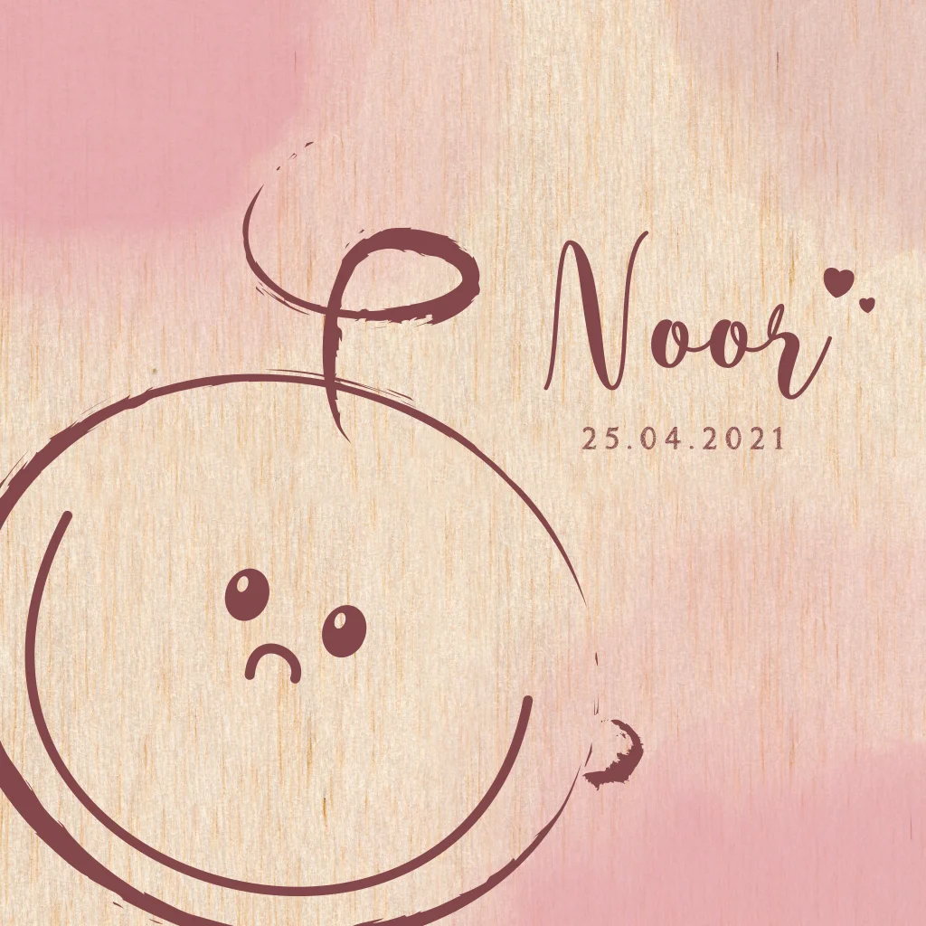 HOUT Geboortekaartje meisje waterverf en baby gezichtje Noor