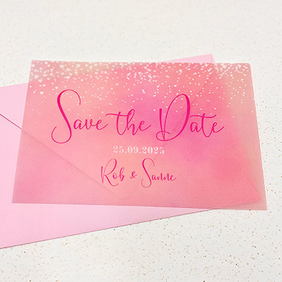 Romantic Pink Dreams Save the date kaart van kalkpapier
