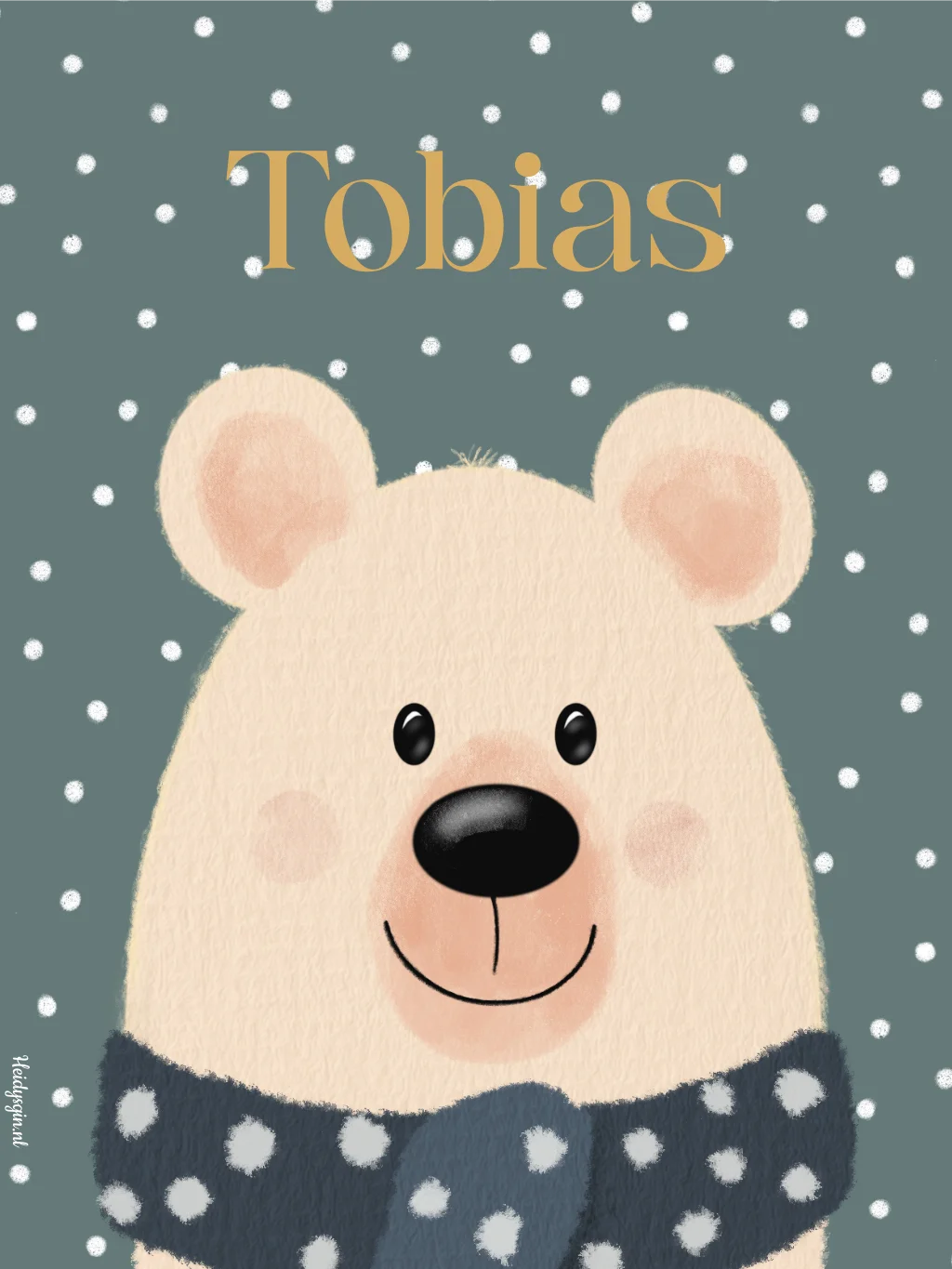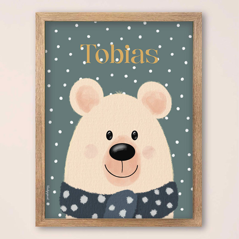 Kinderkamerposter beertje met sjaal en stipjes – Tobias