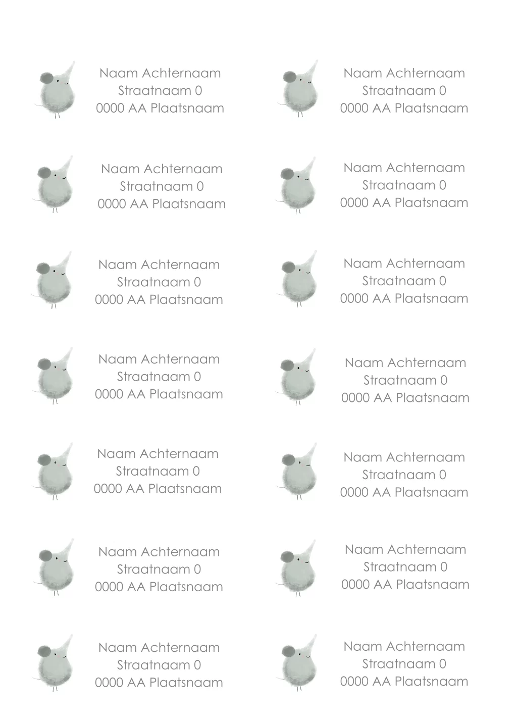 Het is helaas niet mogelijk om een adressenlijst te uploaden, maar je kunt de stickers zelf invullen of blanco stickers bestellen om met de hand te schrijven. Heb je meer dan 14 adressen? Bestel dan meerdere vellen en voeg ze apart toe aan je winkelmandje. Zo geef je jullie geboortepost een persoonlijke en stijlvolle touch die helemaal past bij het geboortekaartje.