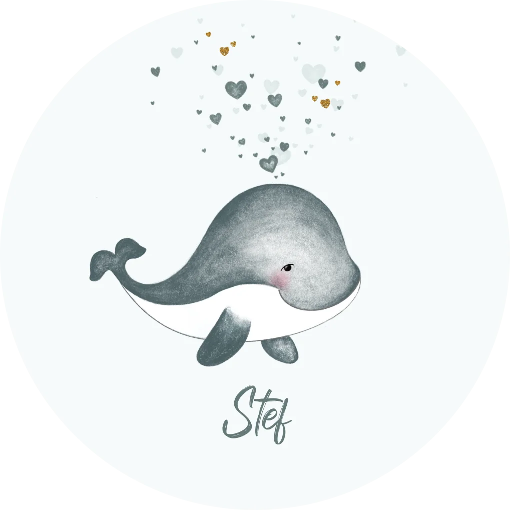 Behangcirkel lief walvisje met hartjes Ø 100 cm
