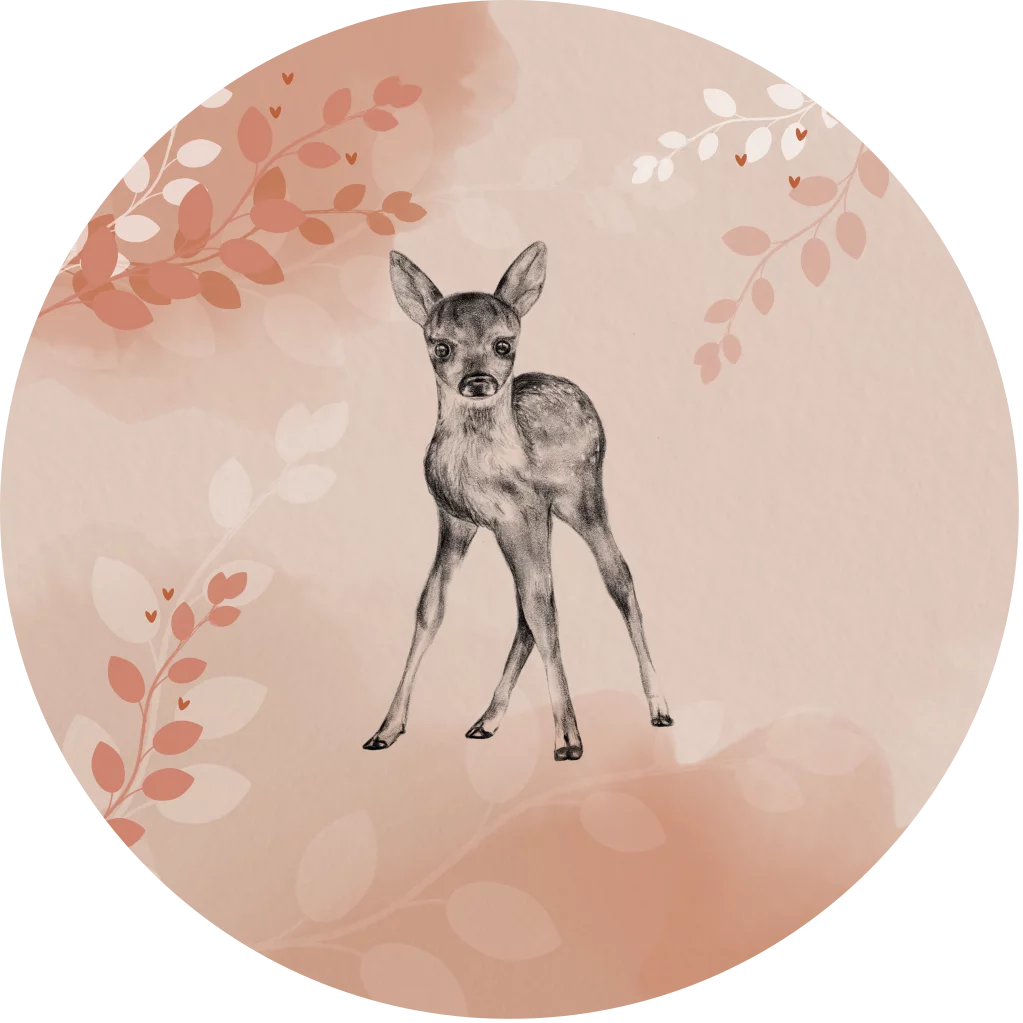 Behangcirkel potloodtekening lief hertje Ø 100 cm