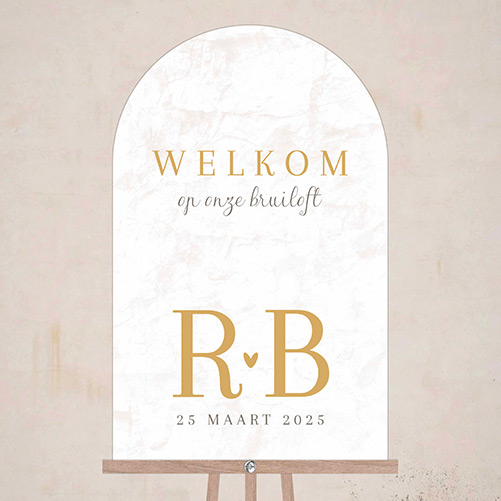 Stijlvol Welkomstbord bruiloft - Boogvorm met marmerlook en initialen