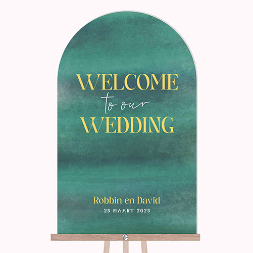 Welkomstbord bruiloft boogvorm groen - pure evergreen