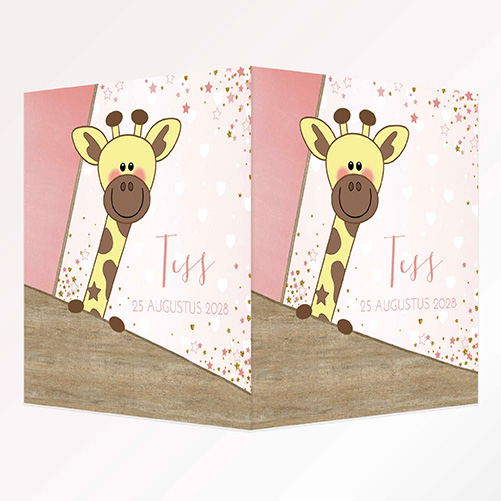 Met dit vrolijke geboortebord / makelaarsbord laat je iedereen weten dat jullie kindje is geboren! Dit leuke raambord heeft een tekening van een lief girafje en vele hartjes. Je kunt het ontwerp zelf naar wens aanpassen. Je hoeft maar 1 zijde aan te passen. Het ontwerp wordt automatisch aan de andere zijde toegevoegd.