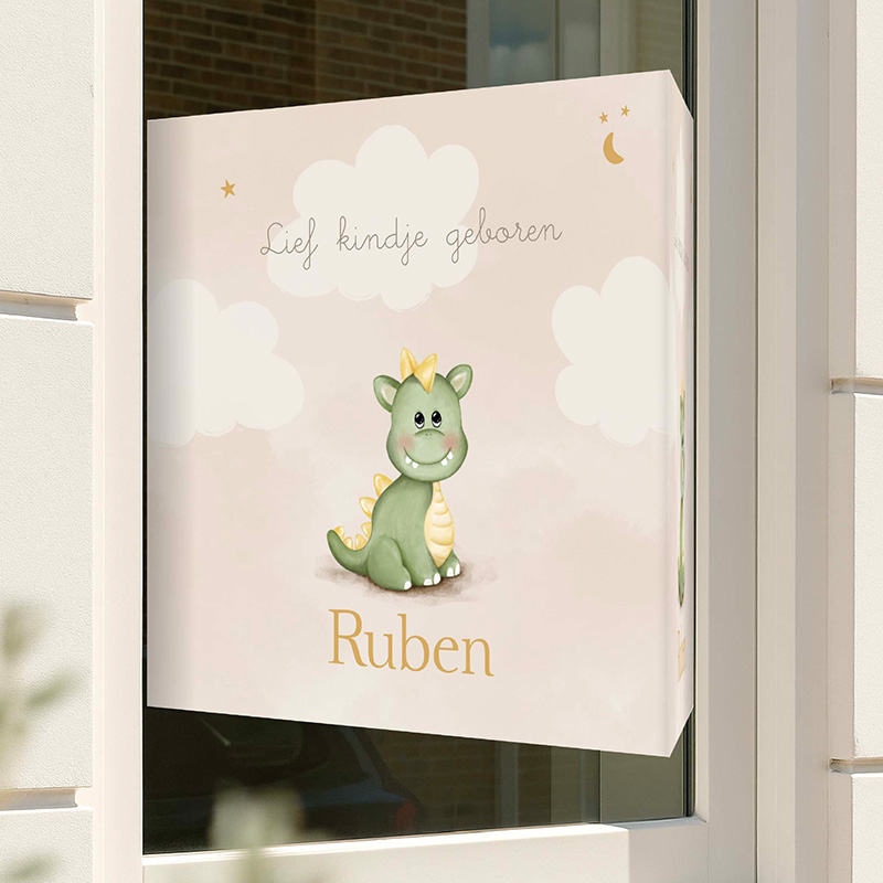 Geboortebord raam met lief draakje wolkjes en sterren – Ruben