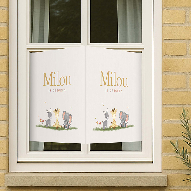 Geboortebord raam met schattige diertjes – Milou is geboren