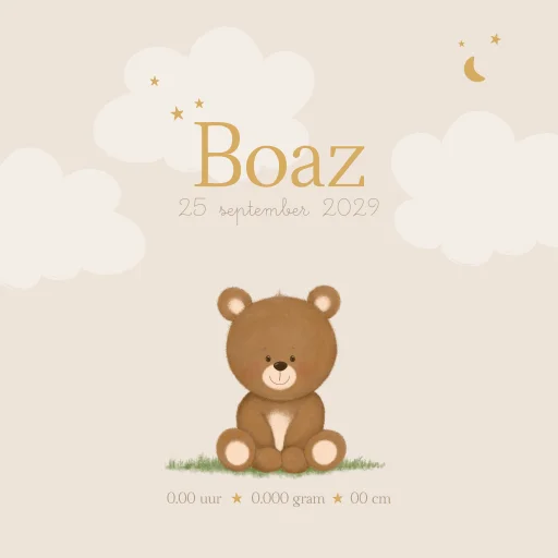 Lieve geboortetegel met beertje en wolkjes – Boaz