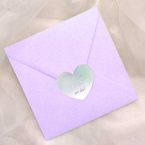 Verzegel de envelop van jullie trouwuitnodigingen met deze hartvormige sluitzegel uit de Mystic Romance collectie. Deze sticker heeft een paarse en lichtgroene kleur en een sprankelende holografische folie, wat zorg voor een magische en elegante uitstraling.