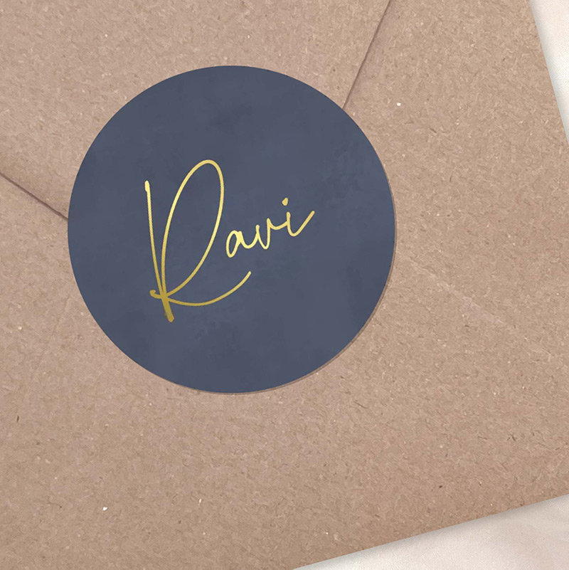 Luxe sluitzegel donkerblauw velvet-look met goudfolie naam - Ravi