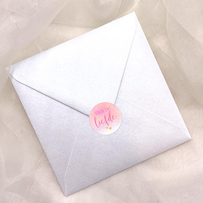 Verzegel jullie trouwuitnodigingen met liefde en elegantie met onze "Liefdevolle Sluitsticker". De lichtroze tinten, verfraaid met delicaat ontworpen witte hartjes en een vleugje geel, geven een romantische en zorgvuldig afgewerkte uitstraling aan deze sluitsticker. Pas deze mooie sticker naar eenvoudig naar wens aan in onze editor.