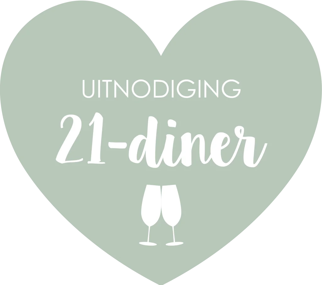Deze trendy sticker met twee proostende champagne glazen kun je eenvoudig naar wens aanpassen. Je kunt de sticker ook mooi gebruiken als extra toevoeging bij jouw 21-diner. Zo kun je deze gebruiken bij bijvoorbeeld de cocktailprikkers of op naamkaartjes plakken. Pas de sticker naar wens aan en maak er een gezellig feestje van. Bestel deze unieke sluitzegel voor jouw volgende 21-diner. Je ontvangt de sticker per vel met 30 sticker per vel. Zo maak je in één keer alle enveloppen voor jouw diner dicht.