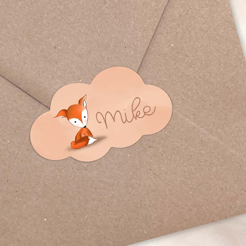 Sluitzegel wolkje in zachte oranjetinten met vosje en babynaam -Mike