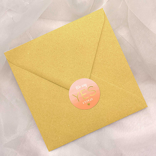 Sticker huwelijk zalm oranje met goudfolie