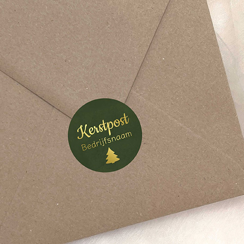 Maak je zakelijke kerstpost compleet met deze elegante groene sluitzegel. De diep groene achtergrond wordt prachtig gecombineerd met een goudkleurig kerstboompje en je bedrijfsnaam in goudfolie, wat zorgt voor een chique en feestelijke uitstraling. Deze sluitzegel geeft elke envelop een professionele en luxe touch, perfect passend bij de stijl van je zakelijke kerstkaart.