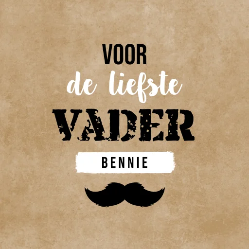 Een persoonlijk tegeltje als vaderdag cadeau voor de liefste vader met zijn naam. Dit ontwerp heeft een licht bruine achtergrond en een speelse tekst met een illustratie van een snor. Plaats de naam van je vader op de tegel en pas het ontwerp naar wens aan.
