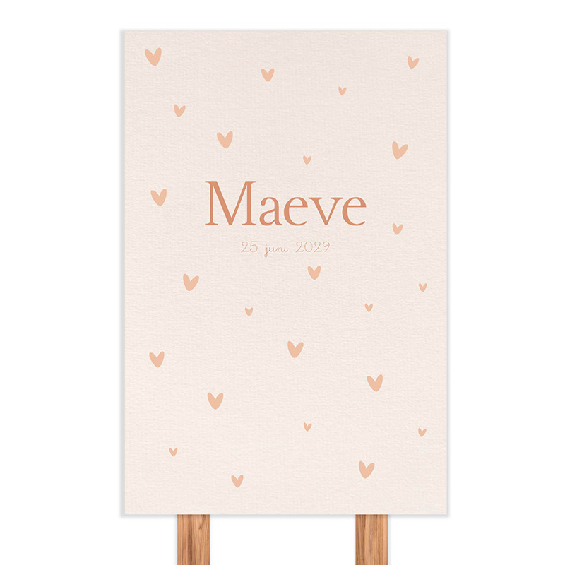 Geboortetuinbord met hartjes in zachte beige tinten