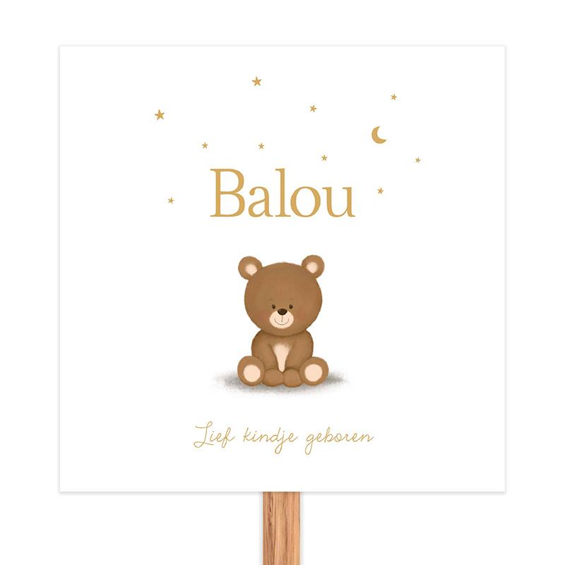 Tuinbord geboorte met lief beertje sterren en maan - Baloe
