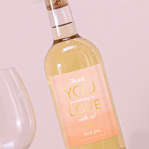 Wijnetiketten stijlvol huwelijksbedankje - Golden peach