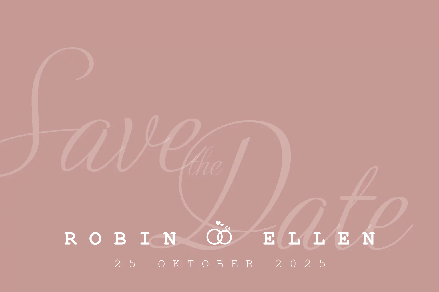 Kondig jullie huwelijksdag aan met deze hippe en stijlvolle Save te Date kaart. Deze roze kaart heeft een subtiel elementje van de twee trouwringen.De kaart heeft een dubbelzijdige roségoudfolie bedrukking. Welke eenvoudig kan worden omgezet in 1 van de andere folie kleuren. Deze kaart is een onderdeel van de trouwhuisstijl van: Stijlvol, hip, roze en trouwringen.
