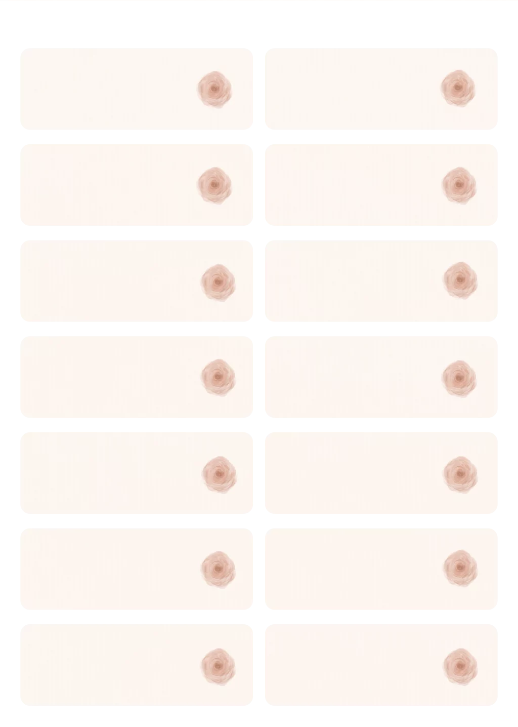 Wil je de adresstickers liever zelf met de hand invullen of thuis printen? Kies dan voor deze blanco variant uit de Dusty Rose collectie. De stickers hebben dezelfde elegante stijl met het zachte roosje en naturel tinten, maar zonder voorbedrukt voorbeeldadres.