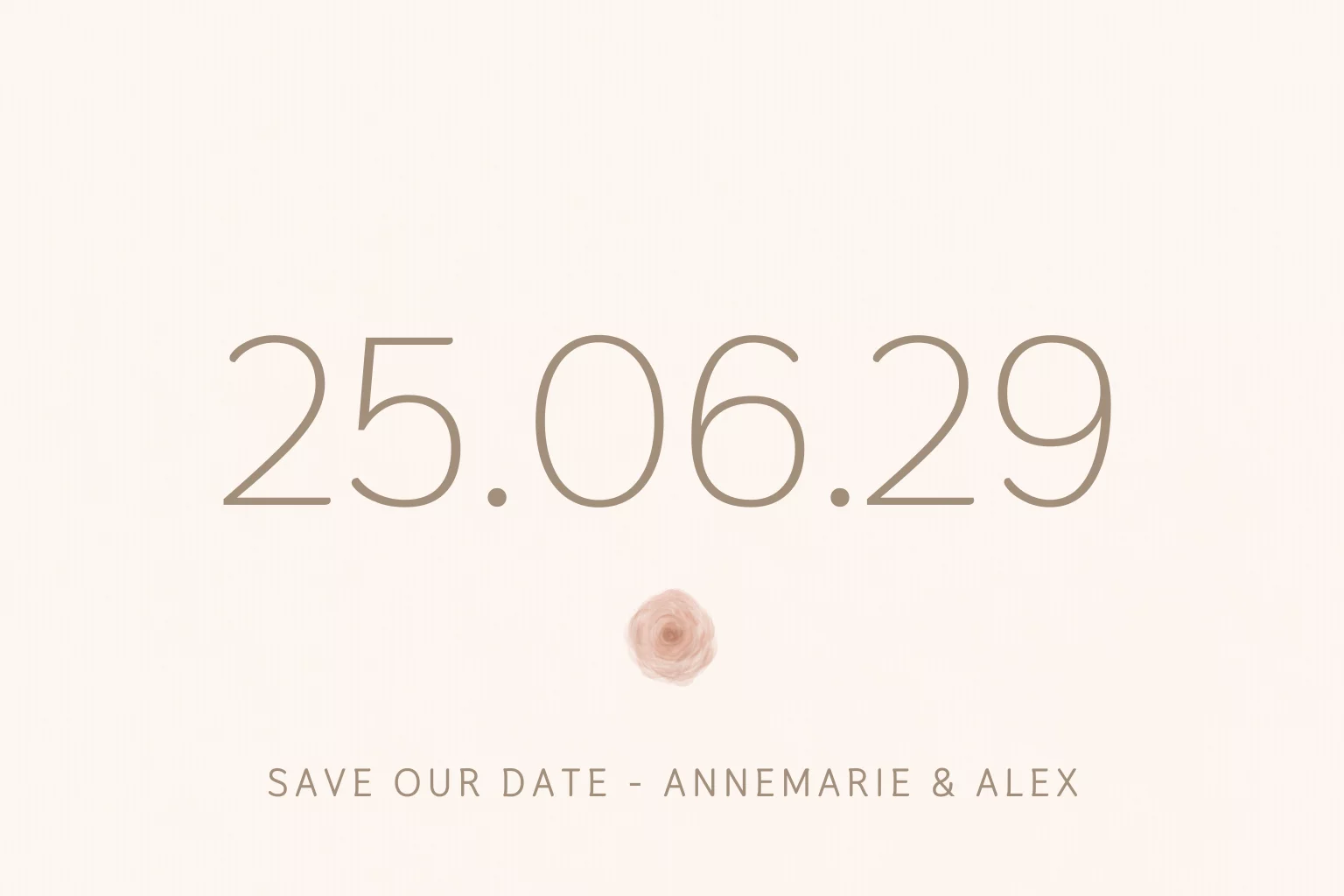 Laat jullie gasten op tijd weten dat er iets moois aankomt met deze stijlvolle save the date kaart. De zachte naturel tinten, minimalistische opmaak en het herkenbare roosje uit de Dusty Rose collectie maken dit een rustige maar sfeervolle eerste aankondiging van jullie dag.