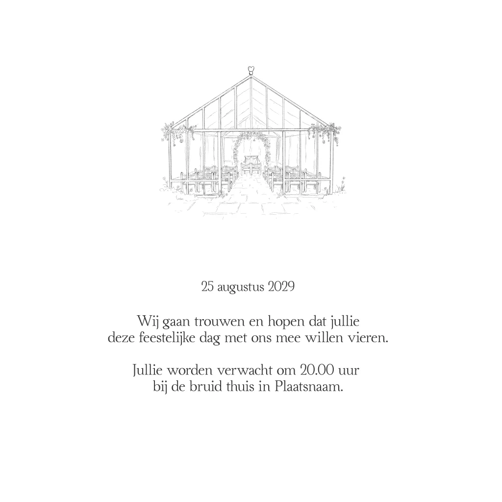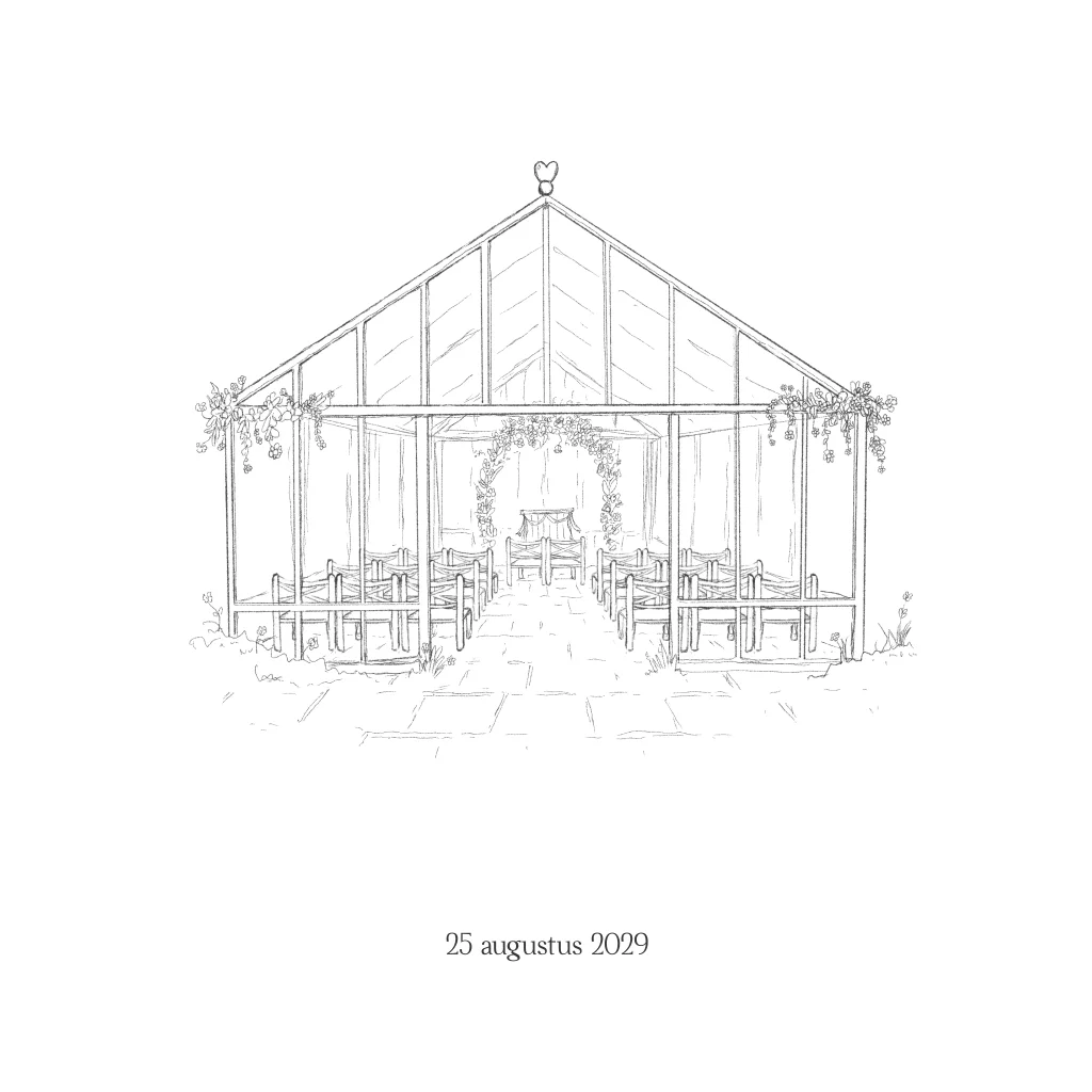 Perfect voor bruidsparen die trouwen in een kas, serre of groene buitenlocatie en op zoek zijn naar een elegante trouwkaart met een persoonlijke touch.