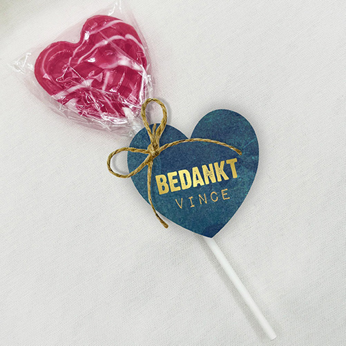 Maak de communiebedankjes voor jullie zoon extra speciaal met dit hartvormige label, met een stoer ontwerp. Het label heeft een stoere donkerblauwe achtergrong met een goudfolie bedrukking. Dankzij het handige gaatje kun je eenvoudig een lint of touw toevoegen om het label aan je bedankjes te bevestigen, zodat je de gasten een stijlvolle herinnering kunt meegeven.