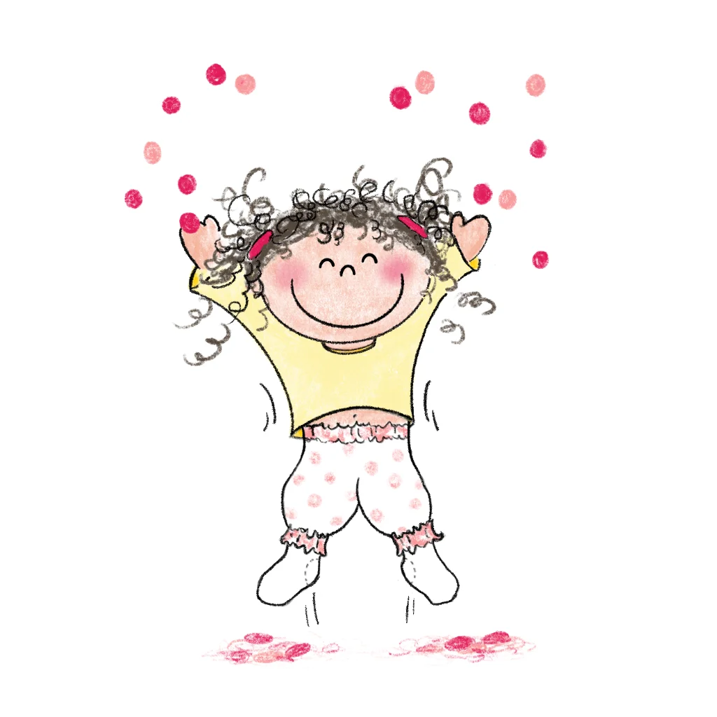 Aanpasbare sluitzegel met een tekening van een meisje met confetti.