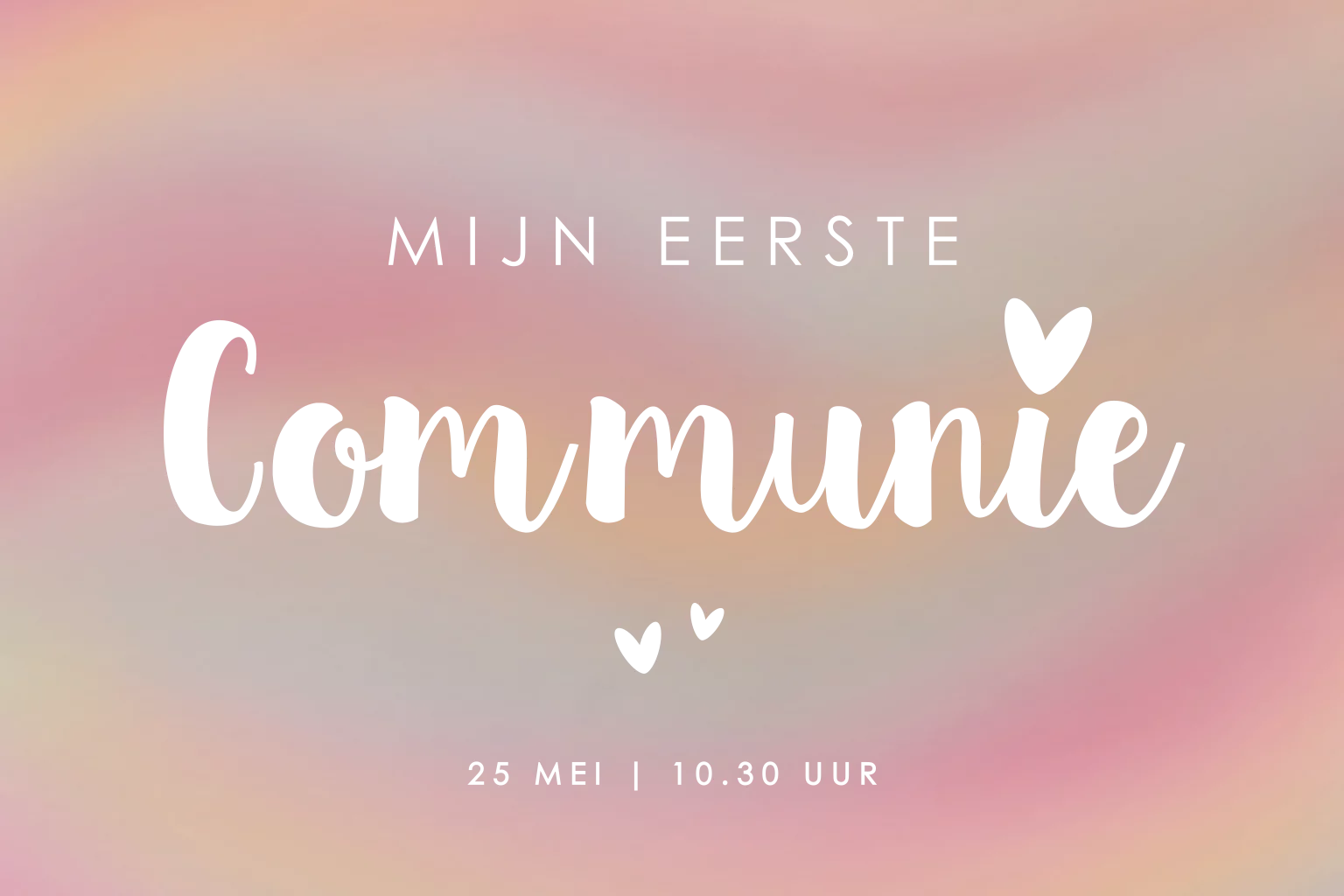 Communie uitnodiging meisje regenboog kleuren en holografische folie