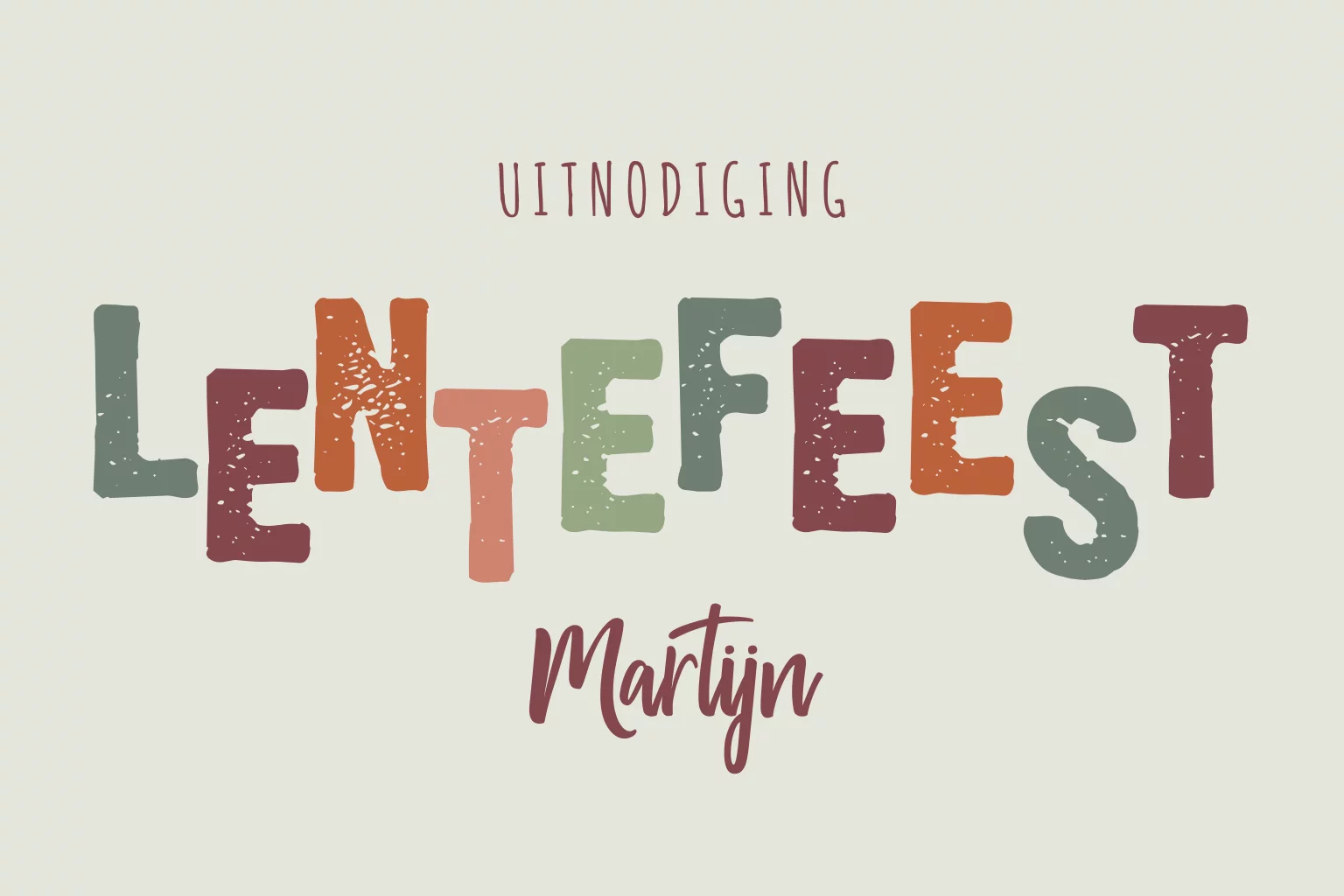 Lentefeest uitnodiging voor een jongen met gekleurde letters