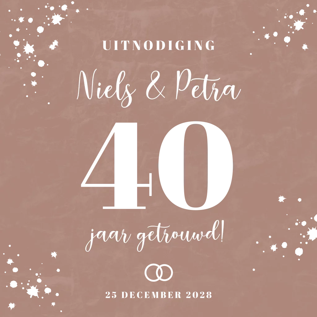 Vier jullie 40 jarige huwelijksjubileum met onze prachtige jubileumuitnodiging. De achtergrond is uitgevoerd in rustgevende oudroze en beige tinten met een verfijnde textuur, waardoor het een tijdloze elegantie uitstraalt.