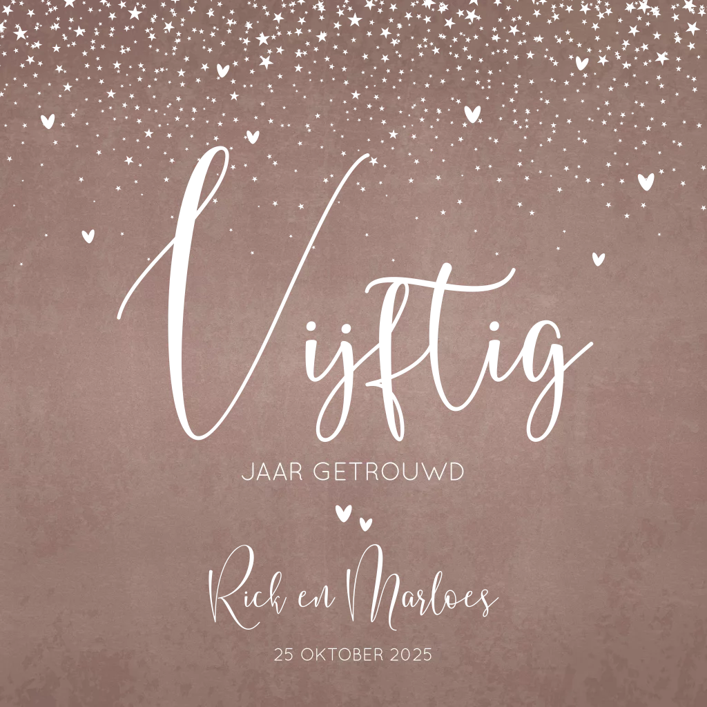 Stijlvolle jubileumkaart velvetlook 50 jaar getrouwd rosegoudfolie