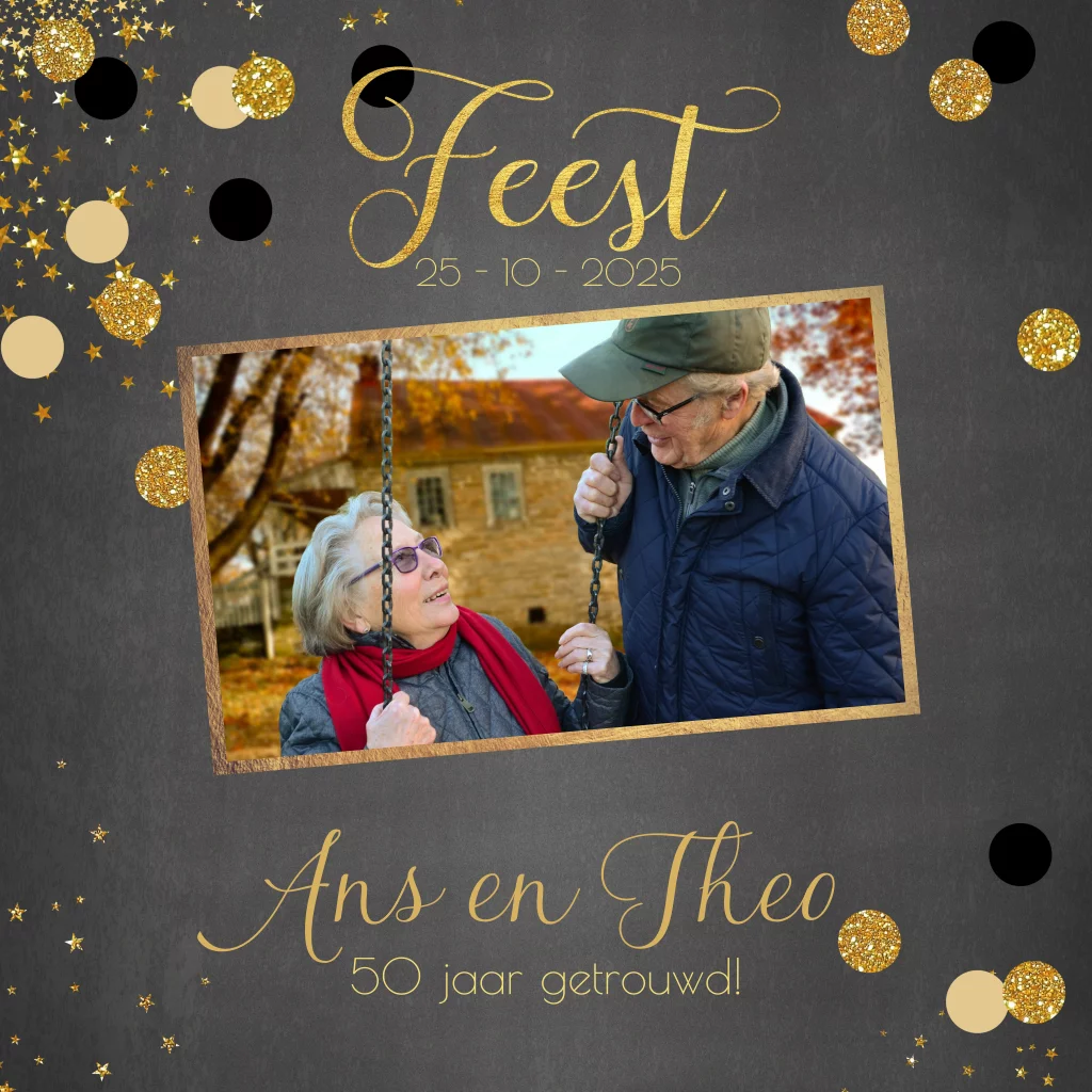 Uitnodiging huwelijksjubileum foto krijtbord confetti en sterren