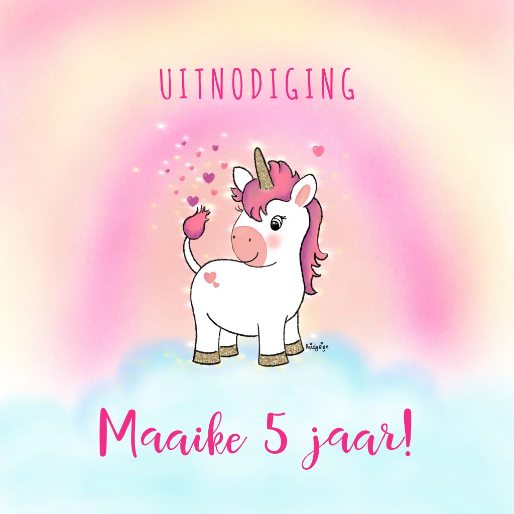 Uitnodiging kinderverjaardag meisje regenboog en unicorn