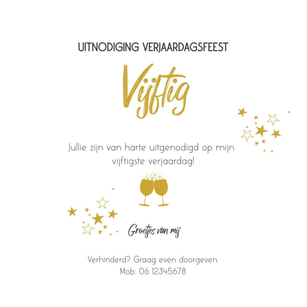 Luxe verjaardagsuitnodiging 50 jaar met goudfolie