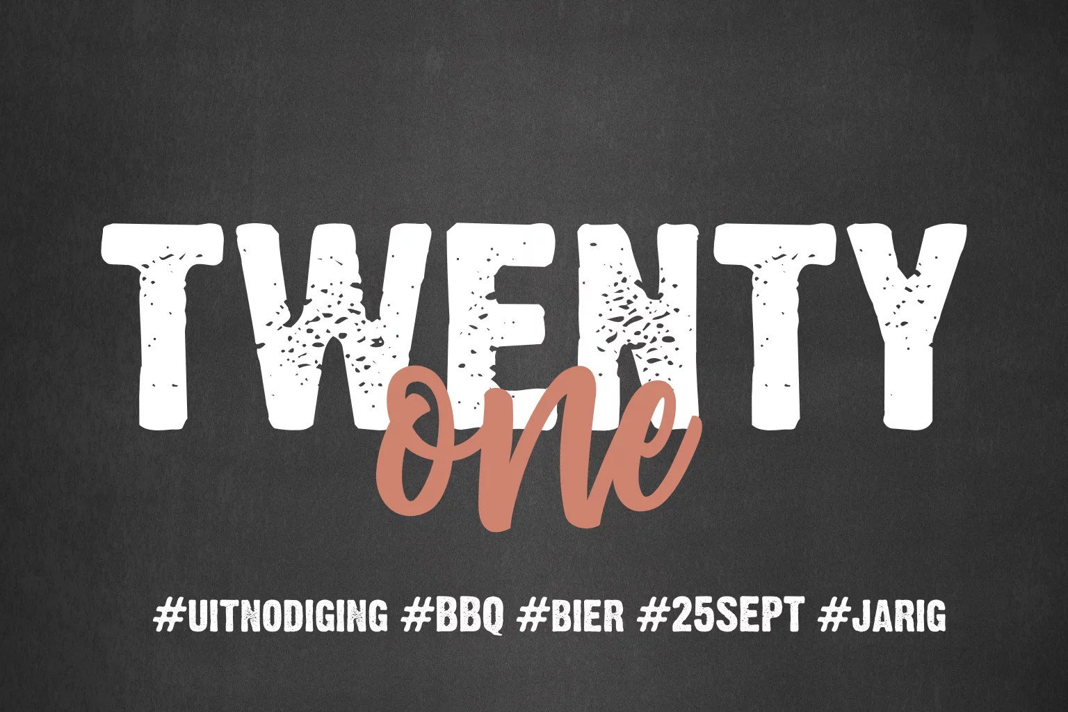 Stoere uitnodiging 21 party voor mannen met krijtbordlook. Nodig je vrienden uit voor jouw 21-diner party met deze stoere uitnodiging. Je past de kaart eenvoudig naar wens aan en maak er zo jouw unieke uitnodiging van. TIP: vervang het woord jarig door jouw naam. LET OP: Vergeet niet de datum op de voorkant van de kaart aan te passen.