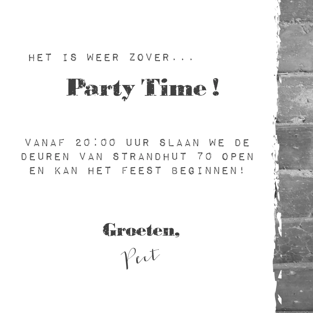 Deze stoere uitnodiging met muur-print en wegwijzer van krijtborden kan voor meerdere gelegenheden worden gebruikt. De foto en teksten zijn gemakkelijk naar wens aan te passen.