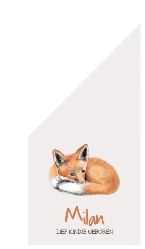 Met deze mooie geboortevlag met de naam van jullie kindje en een realistische dierentekening van een schattig vosje laat je iedereen in jullie omgeving weten dat er een nieuw kleintje is geboren!