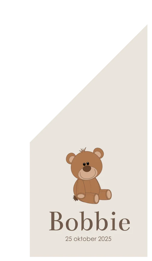 De geboortevlag met de naam van jullie kindje en deze schattige teddybeer is een hippe en unieke manier om iedereen in jullie omgeving te laten weten dat jullie kindje is geboren.