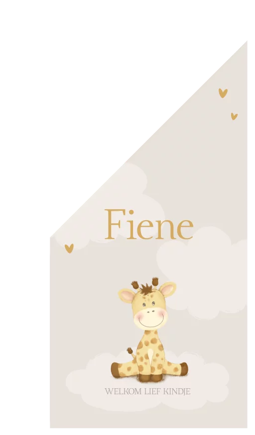 Geboortevlag met lief girafje en wolken in zachte tinten - Fiene
