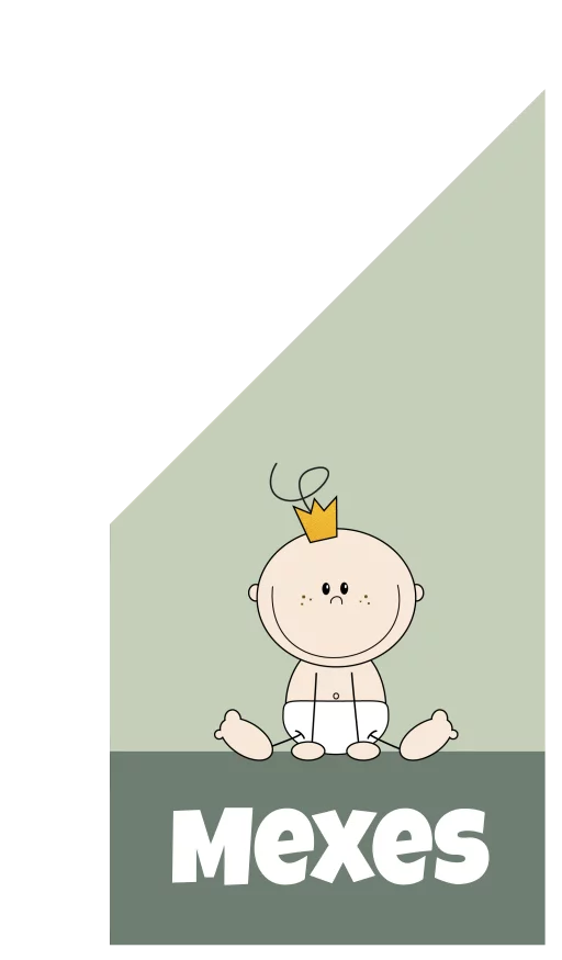 Jullie zoon is geboren! Laat iedereen in jullie omgeving dit weten met deze leuke geboortevlag met een grappige illustratie van een baby jongetje met een kroontje en de naam van jullie zoontje.