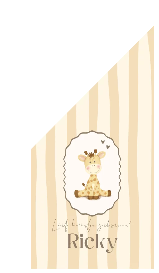 Laat iedereen weten dat jullie kleintje is geboren met deze prachtige geboortevlag voor aan de gevel! De zachte strepen in honingbeige en romig ivoor, gecombineerd met het schattige fluffy girafje, zorgen voor een stijlvolle en speelse uitstraling. Perfect om de geboorte feestelijk aan te kondigen!